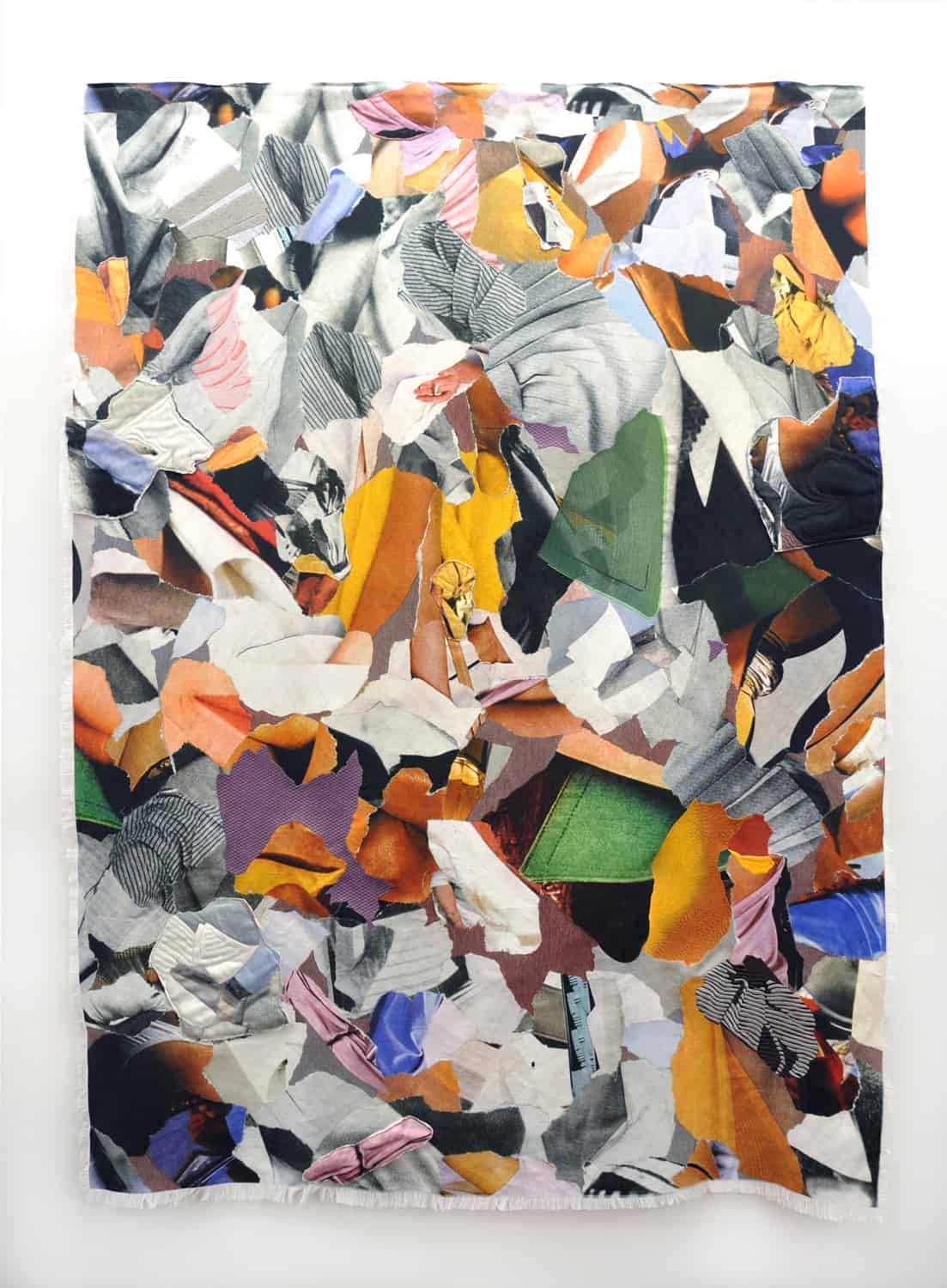 Ehryn Torrell’s textile-works include a range of media, each of which is based on imagery sourced from VOGUE. Torrell’s use of fashion magazines as her source ‘montage material’ allows her to deconstruct images that primarily use the body to seduce and sell. Through this process, she destabilizes normative images of gender, race, sexuality, and class, commenting on consumerist culture and also drawing attention to their construction and materiality. The Canadian artist merges digital reproduction, textile, and embroidery to create works that each appears as a haptic visual cacophony, a sort of celebration that purposely subverts and belies their source material and meaning. Through the use of the hand-made, machine, and digital processes, Torrell’s work aims to slow the reading of images and call attention to the lesser-regarded aspects of their fabrication: how labour and material connect the viewer and artist in dialogue like a subliminal text that is overlooked when in their original state. The works include techniques like scanning, printing, textile printing, embroidery, and quilting. Torrell holds an MFA from the Nova Scotia College of Art & Design (Halifax, Canada), and is widely collected in public and private institutions.